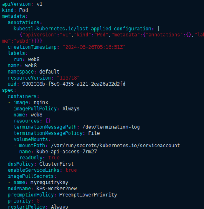 root@k8s-masternew:~# kubectl get pods web8 -o json