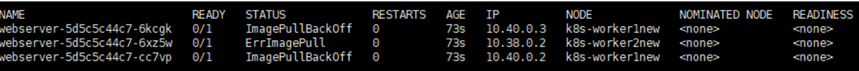 web2 0/1 ContainerCreating 0 0s <none> k8s-worker1new <none> <none>