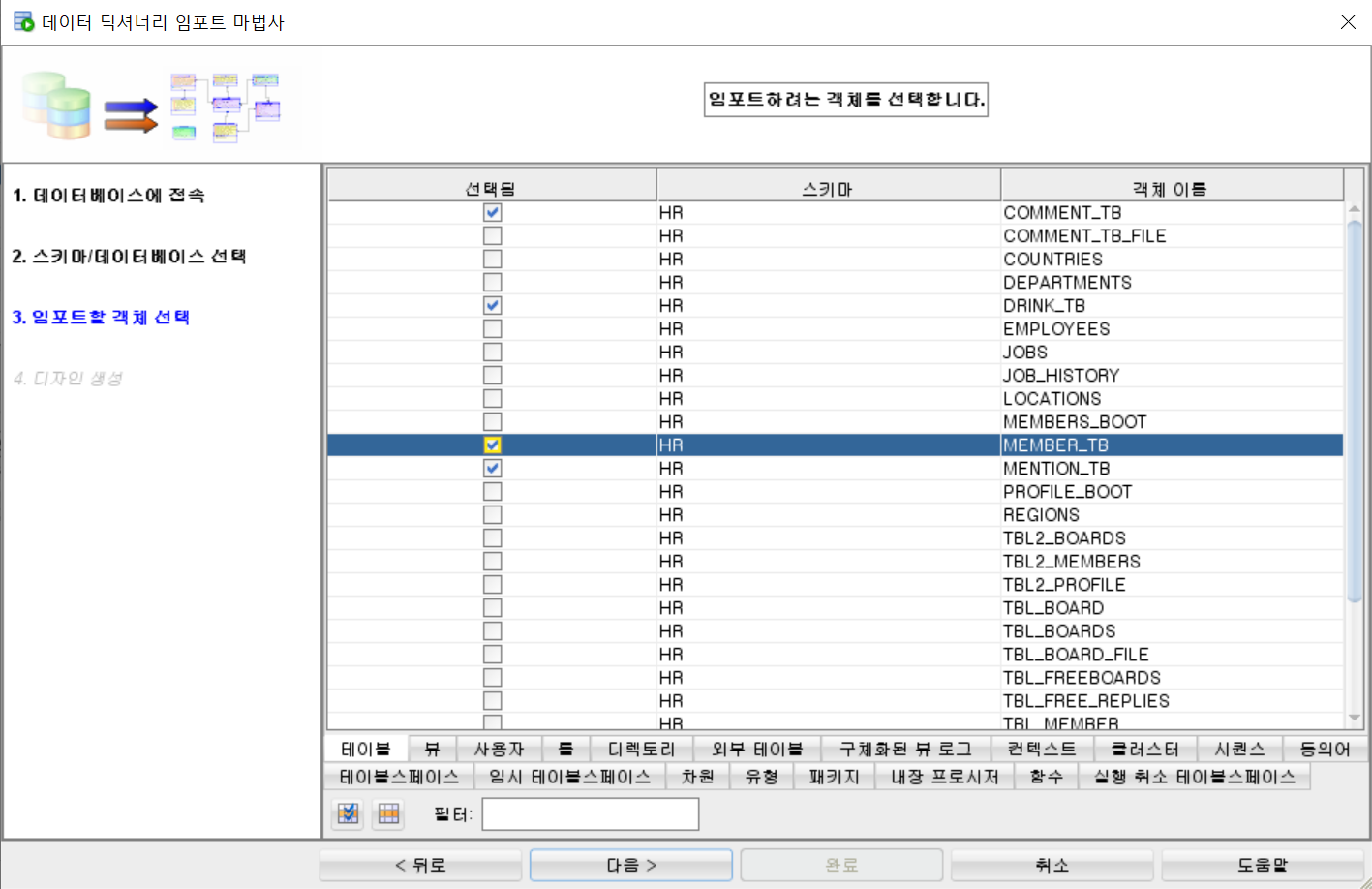 4. 뽑고 싶은 테이블 선택하고 다음 누르면 뜬다!!