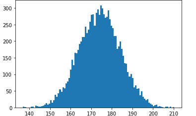 heights=np.random.normal(174,10,size=10000)